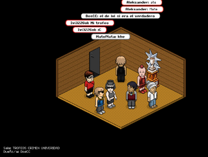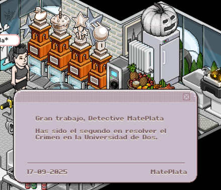 Habbo Origins organizó el concurso CRIMEN EN LA UNIVERSIDAD con el objetivo de premiar a los jugadores más rápidos y atentos consiguieron encontrar al asesino y el arma del crimen. Los galardones consistían en **Trofeos Estrella de Creador** para los tres primeros lugares (oro, plata y bronce).